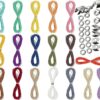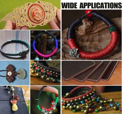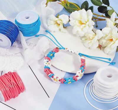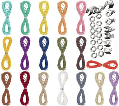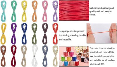 It includes durable waxed polyester cords in vibrant multicolor shades, perfect for bracelet and necklace crafting, macrame art, and beading projects.