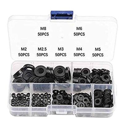 The DIY Crafts 364 Pcs Nylon Plastic Insulation Washer Set includes a versatile range of flat washers and spacers in M2, M2.5, M3, M4, M5, M6, and M8 sizes. Made from durable black nylon, these washers are non-conductive, corrosion-resistant, and lightweight—ideal for electrical insulation, machinery, and general DIY use. Perfect for spacing, sealing, and reducing vibration, this set ensures reliable performance across various projects. Conveniently packed in a zip-lock bag for easy storage and organization, it’s a must-have for professionals and hobbyists alike.