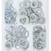 152-piece multicolor flat and lock washer assortment with plastic storage box. Ideal for general hardware, DIY, and repair projects.