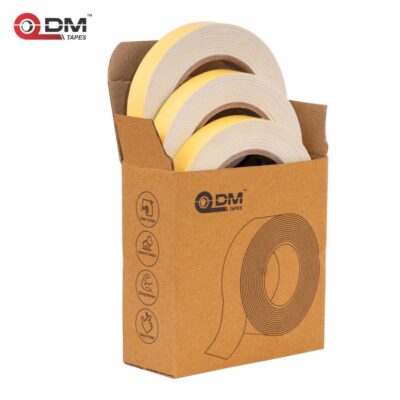 DM TAPES Double-Sided Foam Mounting Tape provides strong self-adhesive bonding for walls, crafts, furniture, paper, hooks, and sheets. The set of 3 tapes features a yellow liner with white foam for versatile DIY and home applications.
