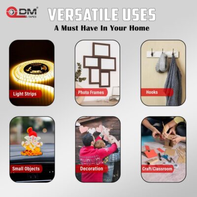 DM TAPES Double-Sided Foam Mounting Tape is a reliable solution for secure and clean adhesion across a variety of surfaces, including walls, furniture, paper, hooks, and craft projects. Each tape features a yellow liner and white foam, making application easy while maintaining a neat appearance. The strong self-adhesive ensures durable bonding on slightly uneven surfaces without the need for nails, screws, or glue. Ideal for home décor, office organization, and creative DIY projects, the foam layer provides cushioning and stability for mounted items. The set includes 3 rolls, offering ample coverage for multiple tasks and long-term use. Its versatile design supports precise placement and mess-free installation. Suitable for both indoor and light-duty outdoor applications, this tape delivers consistent, reliable performance for everyday mounting needs.