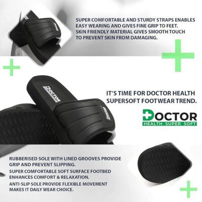 Experience unmatched comfort and support with DOCTOR HEALTH SUPER SOFT Orthopedic Slippers for Men, specially designed for diabetic and sensitive feet. These slippers feature a soft cushioned footbed and ergonomic design that provide excellent arch support and pressure relief during all-day wear. The adjustable Velcro strap ensures a secure and customized fit, while the lightweight and anti-skid sole offers stability and grip on all surfaces. Perfect for everyday indoor and outdoor use, these slippers combine medical-grade comfort with a stylish design, keeping your feet relaxed, supported, and pain-free.