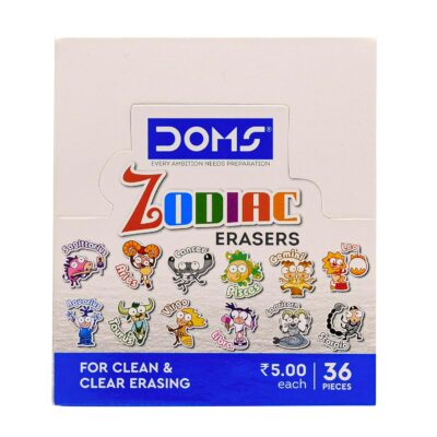 Doms Zodiac Colorful Erasers – Non-Toxic, Clean Erasing (Pack of 36)
