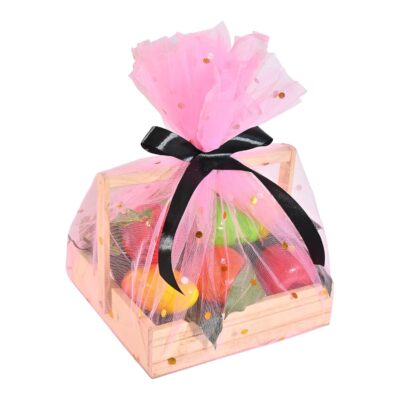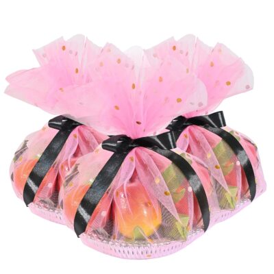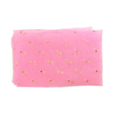 Soft and lightweight dotted pink polyester net fabric (1m width, 5m length) ideal for bouquet wrapping, gift packing, party décor, crafts, and event backdrops.
