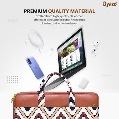The Dyazo Laptop Sleeve Bag 15 to 15.6 Inch is a stylish and eco-friendly protective case crafted for everyday carry, work, college, and travel. Handcrafted from durable jute and premium vegan leather, this slim sleeve blends a modern look with sustainability, offering a professional yet fashionable accessory to safeguard your laptop. The spacious main compartment fits laptops up to 15.6 inches and includes extra pockets for storing tablets, chargers, documents, and other essentials, helping you stay organized on the go. Inside, a soft padded lining cushions your device from scratches, bumps, and minor impacts, while the secure zipper closure ensures your tech stays in place. Its lightweight, slim profile makes it easy to carry on its own or slip into a larger backpack or briefcase, making this sleeve a versatile choice for students, professionals, and frequent travelers alike.