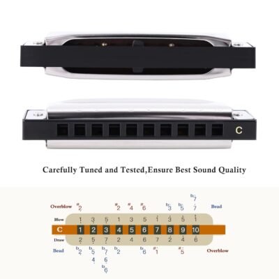 The East Top Blues Diatonic Harmonica in the Key of C is a high-quality 10-hole, 20-tone mouth organ designed for players of all levels—beginners, students, adults, and professionals. Crafted with precision, it produces rich, clear, and vibrant tones suitable for blues, folk, rock, country, and pop music. Its durable stainless steel cover plates and smooth edges ensure comfort during long playing sessions, while the compact and lightweight design makes it easy to carry anywhere. Whether you’re just starting your musical journey or adding to your professional collection, this harmonica delivers excellent sound quality, easy playability, and lasting performance, making it a perfect choice for practice, performance, or gifting.