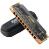 The Easttop T008K Diatonic Blues Harmonica in the key of C is a versatile and well-crafted instrument suitable for both beginners and seasoned players. Featuring a 10-hole, 20-tone diatonic layout, it offers a rich and responsive sound ideal for genres like blues, folk, rock, and country. The harmonica boasts a precision-made plastic comb paired with phosphor bronze reeds and a 1.2mm thick reed plate. This combination enhances tonal richness and facilitates higher pitch production. The reed plate undergoes electroplating for rust resistance, ensuring durability and consistent performance. Players will appreciate the airtight design, which supports advanced techniques such as bending and over-blowing with ease. Encased in a sleek black cover, the T008K harmonica is both aesthetically pleasing and functional. It comes with a protective zipper pouch, making it convenient for transport and storage. Whether you’re practicing at home or performing on stage, this harmonica delivers exceptional value and quality.