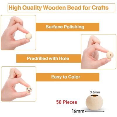 Each bead measures 16mm and is crafted from high-quality natural wood, perfect for jewelry making, home décor, craft projects, and DIY accessories. Their smooth, unfinished surface allows for painting, staining, or customizing to match any creative design.
