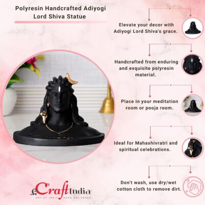 Be the first to review “eCraftIndia Black Adiyogi Shiva Resin Idol – Car Dashboard & Home Decor Statue”