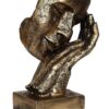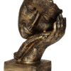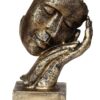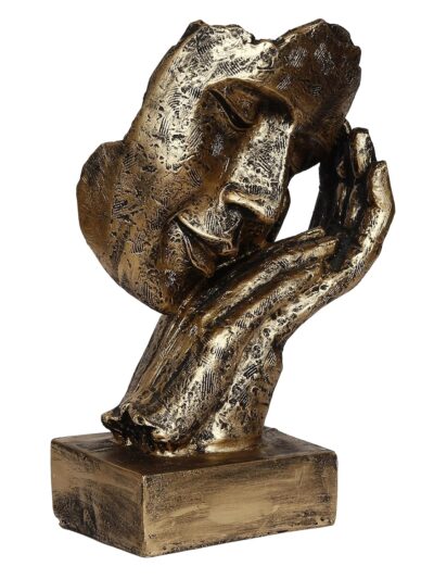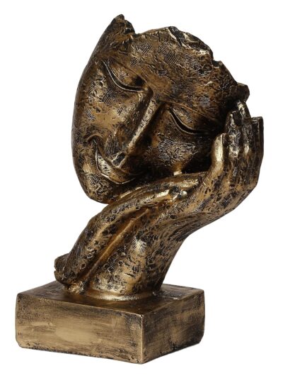 Golden resin human face statue resting on hands, symbolizing peace and relaxation — perfect for home décor and gifting on special occasions.