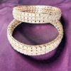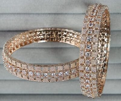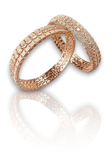 This elegant set of 2 rose gold crystal bangles is a perfect blend of glamour and sophistication, designed to add a radiant charm to any outfit. Crafted with a lustrous rose gold finish, each bangle is adorned with shimmering rhinestones that catch the light beautifully, creating a dazzling effect. The sleek and refined design ensures they can be worn for both special occasions and everyday style, making them a versatile addition to your jewellery box. Lightweight and comfortable, they allow for effortless wear throughout the day without compromising on elegance. The high-quality construction ensures durability and long-lasting shine, while the smooth inner surface provides a pleasant fit against the skin. Whether worn as a pair for a coordinated look or individually for subtle elegance, these bangles elevate your style with minimal effort. Perfect for pairing with traditional attire during festive celebrations or adding a hint of sparkle to western outfits, they suit a wide range of fashion preferences. The rose gold tone complements various skin tones, making them universally flattering. Their timeless design allows them to transition seamlessly from day to night, offering endless styling possibilities. Ideal for gifting on birthdays, anniversaries, weddings, or festive occasions, this set of bangles symbolizes grace and beauty. The rhinestone embellishments bring a touch of glamour without being overwhelming, ensuring they remain classy and chic. Combining fashion-forward design with lasting quality, these bangles are an essential accessory for women who appreciate elegance and sparkle in their jewellery.