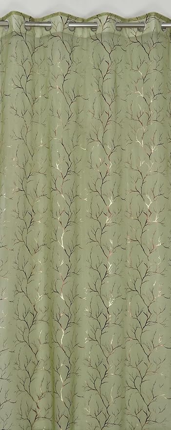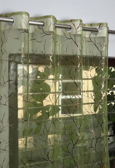 Elegant Sheer Curtain with Foil-Printed Tree Pattern - Lightweight, Decorative Long Door Curtain, Set of 2 | 9 feet | Green