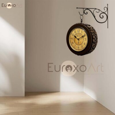Designed with sophistication, this wooden round double-sided wall clock adds a refined charm to any living room, office, or hallway. Its unique dual display showcases English numbers on one side and Roman numbers on the other, offering both versatility and elegance. The station-style design ensures clear visibility from multiple directions while enhancing interior décor. Crafted from durable wood, it blends traditional appeal with modern utility. Ideal as a functional timepiece and a thoughtful gift, this clock is a timeless addition to any setting.