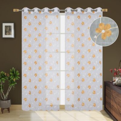 Be the first to review “Embroidery Floral Net Transparent Sheer Curtain – 7X4 Feet, Door Curtains, Gold, Pack of 1 Pc”