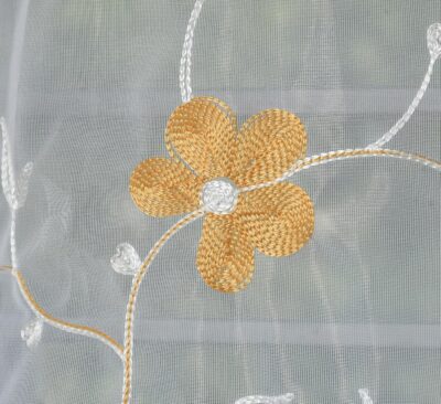 Embroidery Floral Net Transparent Sheer Curtain - 7X4 Feet, Door Curtains, Gold, Pack of 1 Pc
