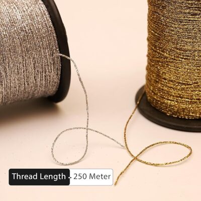 Embroidery Material 1 MM Thin Metallic Glitter Dori Thread (Golden & Silver, 250 Meters/Roll, 2 Rolls) is a premium-quality crafting thread designed to add a sparkling metallic touch to your handmade creations. Made from durable synthetic fiber with a shimmering gold and silver glitter finish, this Dori is ideal for jewelry making, embroidery work, sewing, toran making, festive decorations, and other creative DIY projects. Its 1mm thickness ensures flexibility and strength, making it easy to work with for intricate designs while maintaining a rich, glossy appearance. Perfect for both professional crafters and hobbyists, this combo brings elegance and shine to every creation.
