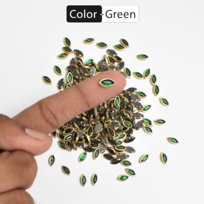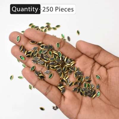 Embroidery material Raw Material Flat Glue-On Kundan Stones Beads (Eye Shape, 5 x 9MM, 250 Pieces) are premium decorative stones crafted to enhance your creative projects with elegance and sparkle. These eye-shaped flatback Kundan stones are perfect for crafts, jewelry making, bangle decoration, maggam work, Aari work, and embroidery designs. The flat surface allows for easy glue-on application on fabric, metal, wood, or plastic, ensuring secure placement and a polished finish. With a pack of 250 pieces, these stones provide excellent versatility for both DIY enthusiasts and professional designers, helping to create intricate and dazzling embellishments for sarees, lehengas, blouses, and other decorative items.
