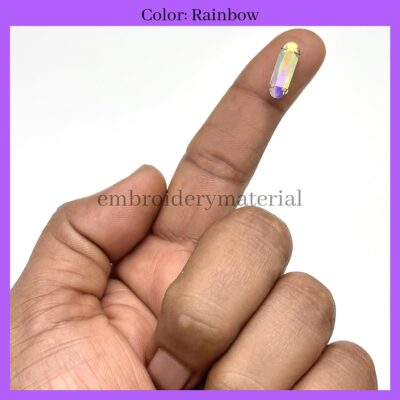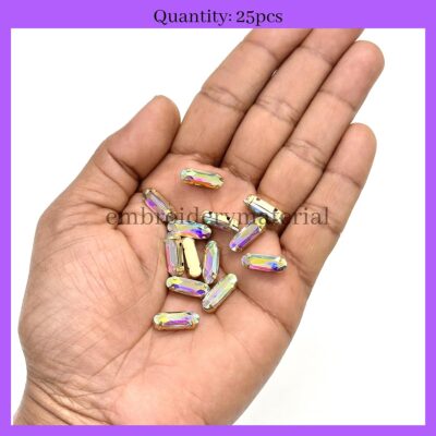 EmbroideryMaterial Sew-On Crystal Glass Stones/Rhinestones (5 x 15MM, Tubelight Shape, Rainbow, 25 Pieces) are premium decorative stones designed to bring vibrant sparkle to your creative projects. These rainbow-colored tubelight-shaped rhinestones are perfect for crafts, embroidery, jewellery making, dress embellishments, bracelet making, and DIY projects. The sew-on design ensures secure attachment to fabric or accessories, making them ideal for enhancing sarees, lehengas, blouses, bags, and other decorative items. With a pack of 25 pieces, these stones allow both hobbyists and professional crafters to add a colorful, dazzling, and handcrafted touch to their creations.