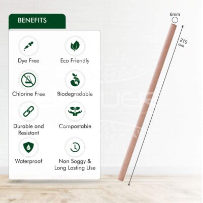 Embuer Kraft Paper Drinking Straws (8 × 210 mm, Pack of 100) are premium, extra-durable paper straws designed for comfortable and reliable sipping. Made from unbleached, eco-friendly kraft paper, these straws are plastic-free and biodegradable, making them a sustainable choice for everyday use. With an 8 mm diameter, they are ideal for juice, milkshakes, cold coffee, smoothies, and other cold beverages. Safe for kids and suitable for parties, restaurants, cafés, and home use, Embuer kraft paper straws combine strength, hygiene, and environmentally responsible design.