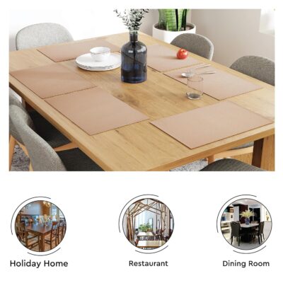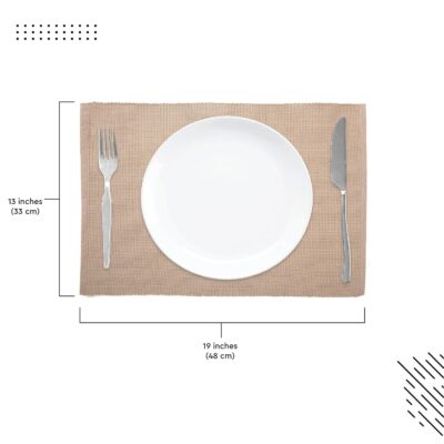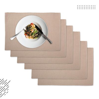 The Encasa XO ribbed table placemats come as a set of 6 in a classy solid beige color, designed to add a clean, modern touch to any dining setup. Each mat measures 48 x 33 cm and is crafted from high-quality woven fabric with a ribbed texture that enhances both durability and style. These cloth placemats protect your table from heat, spills, and scratches while offering a soft, non-slip surface for comfortable dining. Easy to wash and quick to dry, they are perfect for everyday use as well as for special occasions. With over 20 modern colors and woven designs available in this collection, these placemats effortlessly blend with various décor themes, making them a practical, long-lasting, and elegant choice for your dining room, kitchen, or outdoor table arrangements.