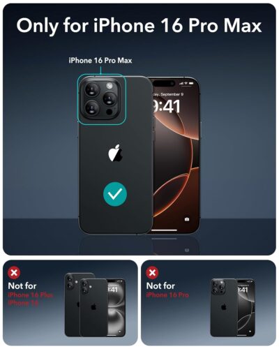 ESR Tempered Glass Screen Protector for iPhone 16 Pro Max offers military-grade protection with 9H hardness and crystal-clear transparency. This 3-pack includes an easy installation tool for perfect, bubble-free application every time.