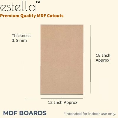 Estella Premium MDF Boards are the perfect base for all your art and craft projects. With a smooth surface ideal for painting, resin work, decoupage, and decorative designs, these sturdy 12 x 18 inch boards (3.5mm thick) provide ample space for creativity. Whether used for wall hangings, mandalas, lippan art, or DIY trays, these cutouts are versatile, durable, and suitable for both beginners and professional artists.