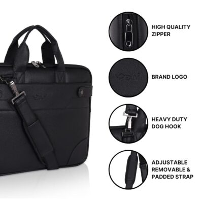 EXIM Office Bag for Man 15.6 inch Vegan Leather Laptop bags Men Use Briefcase Messenger Premium Side Bags -Black