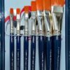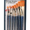 A premium set of 7 flat paint brushes with high-quality bristles, anti-rust ferrules, and sturdy wooden handles. Suitable for watercolor, poster colors, tempera, and acrylic painting.