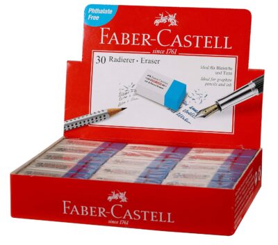 Faber-Castell Ink and Pencil Eraser - Pack of 30 (White and Blue)
