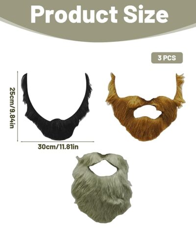Fake Bear Costume Beard, 3-Pack Halloween Fake Moustache for Kids and Girls, Cosplay Dress Up Accessories for Themed Parties and Stage Performances