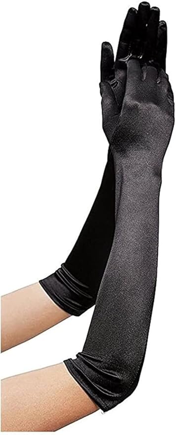 Fancy Dress Wale Long Satin Gloves for Women, Elegant Opera Party Gloves, Elbow-Length Finger Gloves for Dance, Costume, and Cosplay
