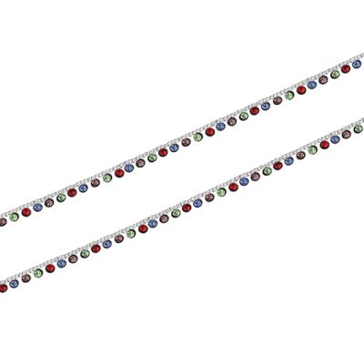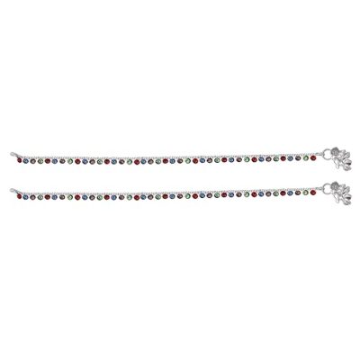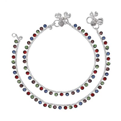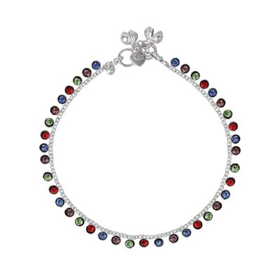 Vibrant rhodium-plated anklet adorned with colorful crystals, offering a lightweight and playful design perfect for adding cheer to women’s and girls’ everyday style.