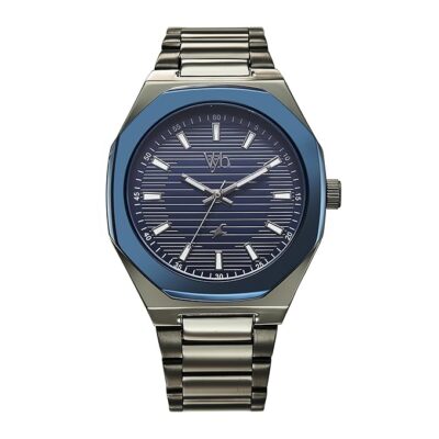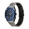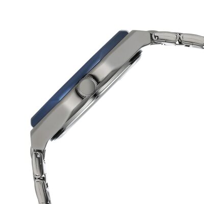 Stylish analog watch with striking blue dial and sturdy stainless steel strap.