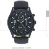 Stylish men’s watch with a bold black dial and durable leather strap.