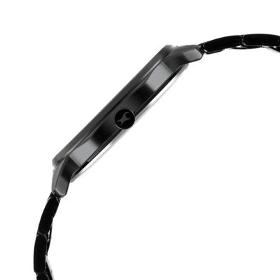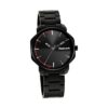 Black dial quartz watch with a sleek black metal strap for a refined look.