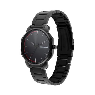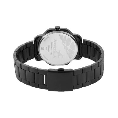 The Fastrack Men Stunners Quartz Analog Dial Black Metal Strap Watch blends bold design with everyday functionality. Its deep black dial and matching metal strap create a striking, modern aesthetic. Powered by precise quartz movement, it offers dependable timekeeping with minimal maintenance. Ideal for guys who want a versatile watch that pairs effortlessly with both casual and formal attire.