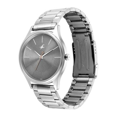 Fastrack Men Stunners Quartz Analog Grey Dial Silver Metal Strap Watch for Guys - NT3291SM01
