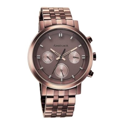 The Fastrack Men Tick Tock Quartz Multifunction Watch combines modern elegance with practical features. Its sleek grey dial is complemented by a stylish rose gold metal strap, creating a refined and contemporary look. Multiple sub-dials add functionality without compromising design. Powered by precise quartz movement, this watch ensures accurate timekeeping while making a bold statement on any occasion.