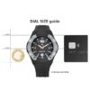 Sporty men’s watch with a black dial and durable black silicone strap.