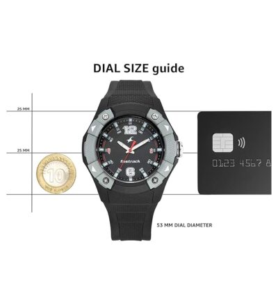 The Fastrack Silicone Trendies Analog Black Dial Men’s Watch features a bold black dial paired with a flexible silicone strap for all-day comfort. Designed for active lifestyles, it offers durability and a modern look that complements casual wear. The clear markers ensure easy readability, while the precise quartz movement delivers reliable timekeeping. A perfect accessory for men who value style and practicality.