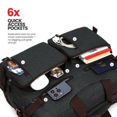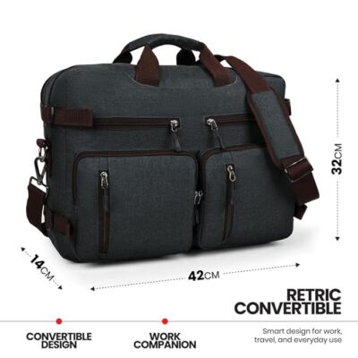 The FATMUG Convertible Laptop Messenger Bag for Men is a versatile and stylish bag designed for both office and travel use, crafted from durable Oxford fabric that blends strength with a professional look. It’s a multifunctional bag that lets you carry it in multiple ways — as a backpack, briefcase, or shoulder messenger bag — giving you flexibility for work, daily commuting, business trips, or college life. The bag includes a padded main compartment that safely holds your laptop and tablet up to around 15.6 inches, helping protect your tech from bumps and scratches. Multiple organised pockets and zippered compartments keep your accessories, chargers, documents, keys, and other essentials neatly sorted and easily accessible. Hidden adjustable shoulder straps make the transition between carrying styles effortless, while the overall build combines practical organization with elegant design, making it suitable for modern professionals, students, and frequent travelers alike.