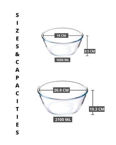 Femora Borosilicate Glass Microwave Safe All-Purpose Mixing Bowls,1650 ML, 2100 ML, Set of 2