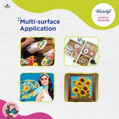 Fevicryl Acrylic Colour Sky Blue (500 ml) is a richly pigmented, high-quality paint perfect for art, craft, DIY décor, and creative projects. Its smooth, opaque formula offers excellent coverage, vibrant color payoff, and a durable, non-cracking finish on multiple surfaces including canvas, wood, leather, earthenware, metal, paper, and fabric. Ideal for school assignments, hobby crafts, home décor, and professional artwork, this versatile sky-blue acrylic dries quickly and adheres firmly, making it great for base coats, detailing, backgrounds, and mixed-media creations. Whether you’re a beginner or an experienced artist, this 500 ml paint delivers consistent performance and a beautiful burst of color to every project.