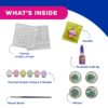This kit includes everything you need to create your own stunning wall décor piece: a pre-marked canvas board, a set of vibrant acrylic colors, a packet of decorative mirrors, Mould It clay, and a fine-quality brush.