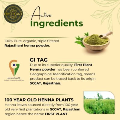 Be the first to review “FIRST PLANT – Premium Rajasthani HENNA POWDER | 100% Organic Henna Powder for Hair Colour and Hair Care I GI Tagged Henna directly from Farms (350 gm)”