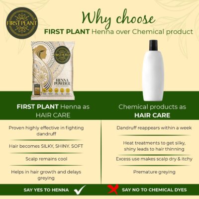 FIRST PLANT Premium Rajasthani Henna Powder is made from 100% organic, GI-tagged henna sourced directly from farms. It provides natural hair color while supporting overall hair care and scalp health.