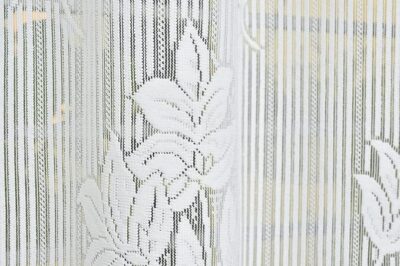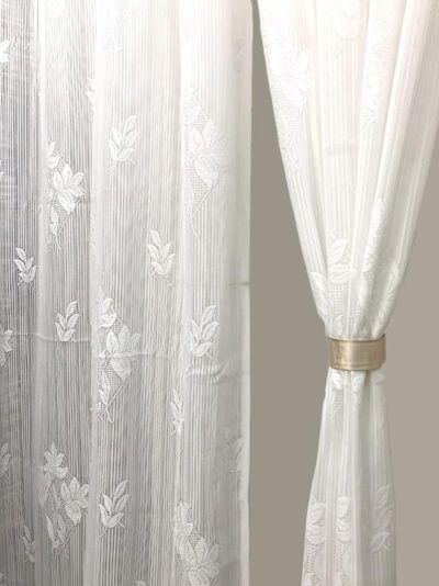 The set of two panels features a delicate floral-net motif in white, allowing natural daylight to gently filter through while maintaining a sense of privacy.