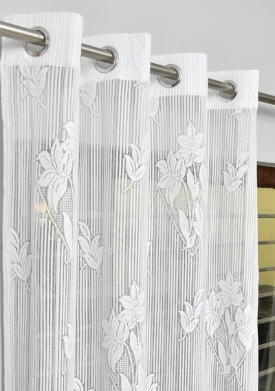 Wrap your window in soft light and elegant patterning with these semi-transparent net curtains. Each piece is designed for windows approximately 5 feet (≈ 152 cm) in length, making it suitable for standard window drops. The set of two panels features a delicate floral-net motif in white, allowing natural daylight to gently filter through while maintaining a sense of privacy. The grommet/eyelet top ensures easy hanging and a smooth glide across your curtain rod—suitable for living rooms, bedrooms or any space where you want ambient light rather than full blackout. Machine-washable and budget-friendly, these curtains are a practical décor upgrade if you’re looking for light-filtering elegance rather than heavy insulation.