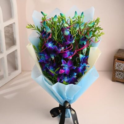 FlowerAura Fresh Live Flower Bouquet of 3 Blue Flowers is a unique and elegant floral gift, perfect for expressing deep emotions, admiration, and trust. This beautiful bouquet features 3 fresh, carefully selected blue flowers, symbolizing mystery, calmness, and everlasting affection. Ideal for birthdays, anniversaries, weddings, Mother’s Day, Father’s Day, and love & romance gifting, it makes a thoughtful choice for those who appreciate something different and special. Neatly arranged and delivered fresh, this bouquet adds a touch of sophistication and charm to any occasion. With the convenience of same-day delivery, it’s a perfect surprise to make your loved ones feel truly cherished.