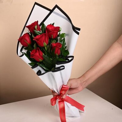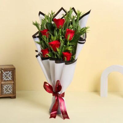 Flower Aura Fresh Live Flower Bouquet of 6 Red Roses in Premium Paper is a classic and elegant floral gift, perfect for expressing love, passion, and heartfelt emotions. This beautiful bouquet features 6 fresh, handpicked red roses, carefully arranged and wrapped in high-quality premium paper for a sophisticated look. Red roses symbolize deep love and romance, making this bouquet ideal for birthdays, anniversaries, weddings, Mother’s Day, Father’s Day, and romantic occasions. Thoughtfully crafted to ensure freshness and visual appeal, it adds charm and warmth to every celebration. With reliable same-day delivery, this bouquet is a wonderful way to surprise your loved ones and make their special moments truly memorable.